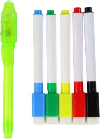 Táto detská tabuľa podporuje fantáziu a učenie zábavnou formou. Pomocou LED fixu vytvoria deti na špeciálnom paneli žiarivé obrázky, ktoré v prítmí doslova ožijú. Druhá strana slúži ako biela tabuľa na písanie a kreslenie stierateľnými fixkami, takže môžu trénovať písmená, čísla aj prvé počty stále dookola.