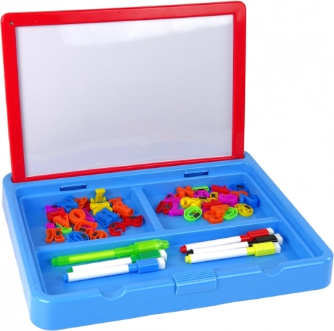 Súčasťou je praktický úložný box s 3 priehradkami na fixky, magnetické písmená a číslice. Tabuľa je skvelou edukačnou pomôckou pre predškolákov: rozvíja kreativitu, koncentráciu aj motoriku a vďaka magnetom pomáha so spoznávaním abecedy a matematiky.