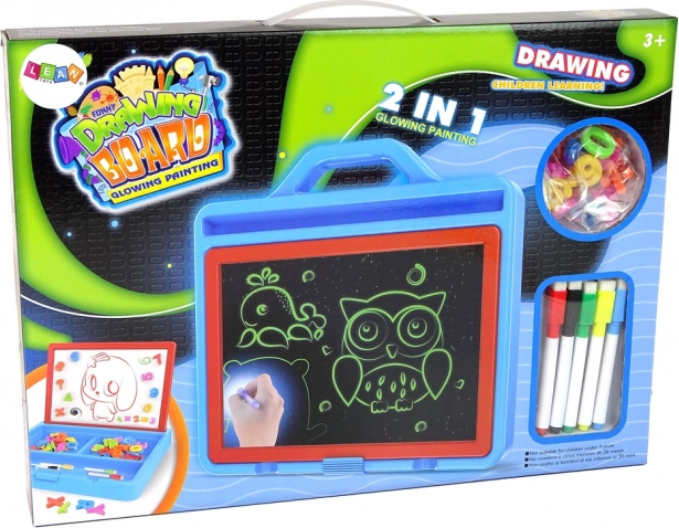 Objavte kreatívnu zábavu so svietiacou magnetickou kresliacou tabuľou 2v1, ktorá spája klasické písanie na bielu tabuľu s magickým LED zvýraznením a magnetickými písmenami a číslicami. Vďaka obojstrannému prevedeniu, vstavanému organizéru s 3 priehradkami a opätovnému mazaniu je ideálna na hranie, učenie aj tréning jemnej motoriky bez plytvania papierom.