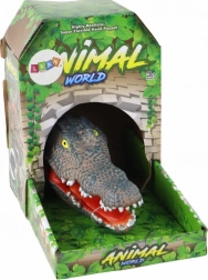 Táto sivá maňuška krokodíla zaujme realistickým vzhľadom – od textúrovaných šupín po výrazné žlté oči. Vďaka mäkkej, pružnej gume je príjemná na dotyk a umožňuje prirodzené pohyby papule aj hlavy, takže každé predstavenie bude živé a zábavné.