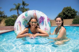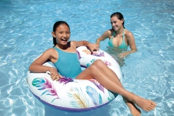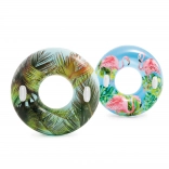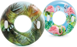 Odolný materiál s hrúbkou 0,25 mm dobre odoláva bežnému používaniu pri bazéne aj pri mori. Vďaka tropickým motívom s palmami alebo plameniakmi kruh upúta pozornosť a dodá vašej letnej výbave svieži štýl.