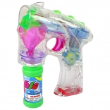 Spustenie zábavy je jednoduché – stačí jemne stlačiť ružové tlačidlo a objavia sa farebné mydlové bubliny. Po stlačení sa pištoľ rozsvieti, farebne rozožiari priestor a vytvorí magickú atmosféru.
