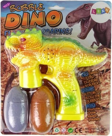 • Kompletná sada: bublifuk dinosaurus + 2 vajcia s roztokom.