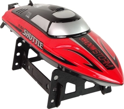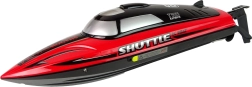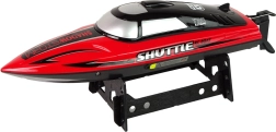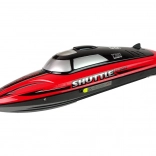 Tento svižný RC čln s označením Shuttle je pripravený na jazdu hneď po vybalení – stačí vložiť priložený akumulátor a vyraziť na hladinu. Vďaka výkonnému pohonu dosahuje rýchlosť až 25 km/h, zatiaľ čo antikolisná ochrana chráni trup pri ostrých manévroch. Ergonomický pištoľový ovládač skvelo padne do ruky a umožní precízne riadenie.