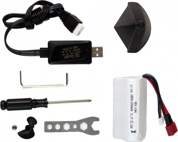 - Ready to Run: všetko v balení – čln, akumulátor, nabíjací kábel, náradie, stojan a náhradná vrtuľa.