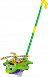 Zelený tlačný vrtuľník s pilotom je hračka, ktorá prináša radosť a smiech do detského sveta. Keď sa vrtuľa začne otáčať, vydáva zábavný zvuk zvonenia, ktorý deti pobaví. V kabíne vrtuľníka je malý pilot, ktorý dopĺňa zábavný dizajn hračky.