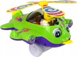 Keď je hračka v pohybe, očká vrtuľníka sa hýbu a jazyk sa vysúva, čo umožňuje ešte väčšiu interaktivitu. Krídla hračky sú zdobené veselými nálepkami, ktoré podporujú vizuálnu stimuláciu. V balení je aj dvojdielna vodiaca tyč s pohodlnou rukoväťou, ktorá uľahčuje manipuláciu s hračkou.