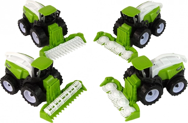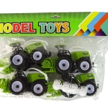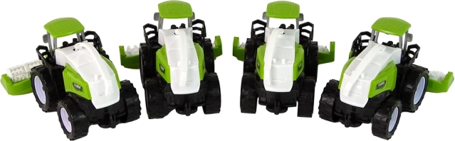 Súprava štyroch detských traktorov v realistickej zelenej farbe je vytvorená pre malých milovníkov poľnohospodárskych strojov. Realistický dizajn a funkčné detaily poskytujú deťom možnosť tvorivej hry. Vyrobené z odolného plastu, tieto hračky zaručujú dlhotrvajúcu zábavu. Každý traktor vo veľkosti 16 cm x 11 cm x 9 cm sa ľahko ovláda a ponúka možnosť kombinácie s imitáciami poľnohospodárskych zariadení.