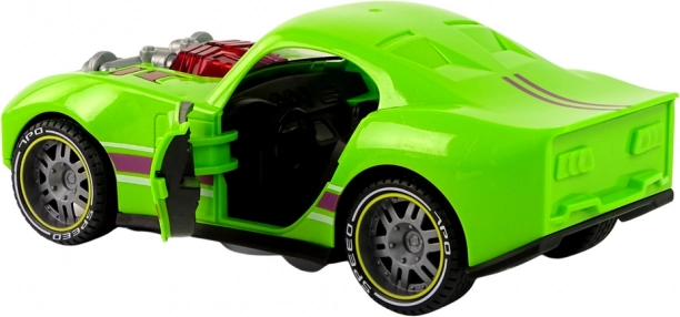 Zábavné zelené športové auto v mierke 1:14 poteší malých pretekárov: ponúka svetelné a zvukové efekty, otváracie dvere a pohon na zotrvačník pre akčnú jazdu. Pre deti od 3 rokov, napájanie 2× AAA (nie sú súčasťou), certifikácia CE a EN71.