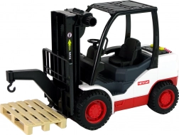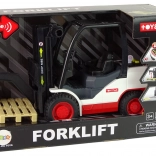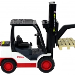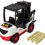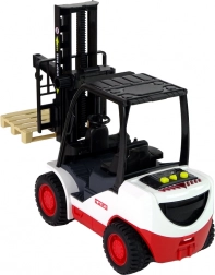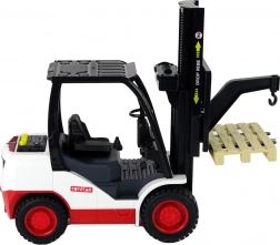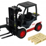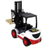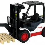 Tento detailne spracovaný vysokozdvižný vozík nadchne všetkých malých milovníkov pracovných strojov. Vďaka otočnému ovládaču možno vidlice ľahko zdvíhať a spúšťať, zatiaľ čo tri realistické zvuky a červené svetlo po stlačení žltých tlačidiel umocnia zážitok z hry. Súčasťou je odnímateľná paleta na nakládku a vykládku.