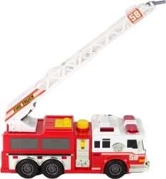 Toto detailne spracované červené hasičské auto vtiahne deti do sveta záchranárov. Ponúka funkčné prvky ako rozťahovací a otočný rebrík, svetelné a zvukové efekty, a dokonca aj prívod vody s aktiváciou pomocou veľkého žltého tlačidla na simuláciu hasenia.