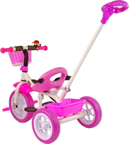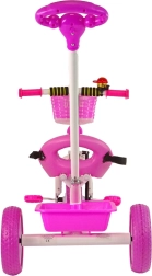 Štýlová trojkolka PRO100 v ružovej farbe je skvelým parťákom na prvé vychádzky. Ponúka stabilnú konštrukciu, rodičovskú vodiacu tyč pre plnú kontrolu, bezpečnostné pásy a tiché EVA kolesá. Predný aj zadný košík, skladacie stupačky a zvonček z nej robia ideálnu voľbu pre deti od 6 do 60 mesiacov.