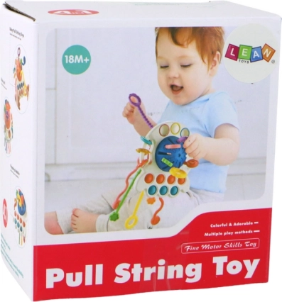 Na hračke je 6 lán rôznych farieb a textúr, niektoré sa ťahajú ľahko, iné sú náročnejšie. Ťahajte lano doľava a doprava, počúvajte a vnímajte rôzne vibrácie a zvuky, ktoré lano vydáva, čo je veľmi užitočné pre rozvoj hmatu. Môže tiež obohatiť detské poznanie farebných vzorov.