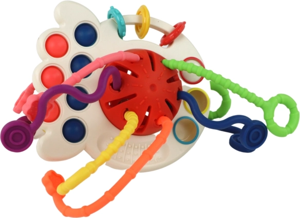 Zábavná senzorická hračka umožňuje nielen zábavné ťahanie farebných vlákien z jedného konca na druhý, ale aj stláčanie a pohybovanie bublín. Kombinuje rôzne herné prvky, vďaka ktorým zažijete iný druh zábavy a zároveň rozvíjate svoje motorické schopnosti.