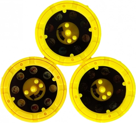 Tri vymeniteľné kotúčiky po 8 snímkach ponúkajú témy hmyz, dinosaury a ovocie. Jednoduché nasadenie a plynulé prepínanie motívov.