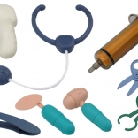 Set obsahuje všetko potrebné k základnej „ordinácii“: striekačku, nožnice, stetoskop a ďalšie doplnky. Je vyrobený s ohľadom na bezpečnosť a spĺňa normy CE a EN71, takže je vhodný pre deti od 3 rokov.