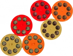 Šesť vymeniteľných kotúčikov s témami ako zvieratá, ovocie, zelenina či doprava pre nekonečnú inšpiráciu.