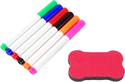 Súčasťou je 6 farebných fixiek a hubka na rýchle mazanie, takže tvorenie je čisté a opakovateľné.