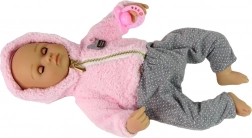 Roztomilé realistické bábätko s dĺžkou 40 cm poteší každé dieťa. Vďaka pohyblivým ručičkám a nožičkám, mäkkej ružovej mikine a sivým nohaviciam s bodkami ponúka množstvo herných scenárov. Súčasťou je cumlík a plienka pre ešte autentickejšiu starostlivosť a rozvoj empatie a predstavivosti. Vhodné od 3 rokov.
