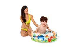 Nafukovací bazénik Intex s roztomilými dinosaurami je ideálny pre prvé vodné radovánky detí od 1 do 3 rokov. Vďaka priemeru 61 cm a výške 22 cm sa zmestí takmer kamkoľvek a poskytne bezpečnú a plytkú zónu na hranie a osvieženie v horúcich dňoch.