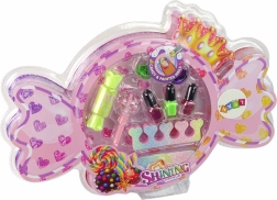 Očarujúca sada na zdobenie nechtov a líčenie, balená v výnimočnom obale v tvare cukríka. Ideálny darček pre malé milovníčky líčenia, kozmetiky a tvorivej zábavy.