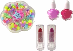 Objavte svet kreativity s touto sadou, ktorá obsahuje rôzne farebné očné tiene, rúže a laky na nechty, ktoré povzbudia predstavivosť vašich detí.