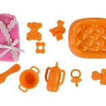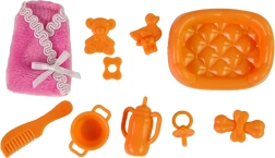 Sada obsahuje rôzne doplnky ako je hrebeň, kačička do kúpeľa a detská fľaša, ktoré zvyšujú možnosti hry.