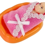 Súčasťou sady je tiež malá bábika – malé dievčatko s blond vlasmi a modrými očami. Celý set je doplnený bohatým príslušenstvom, ako je hrebeň, hrnček, cumlík, kačička do kúpeľa, fľaša, plyšový medvedík a kŕmna stolička. Ideálny darček pre detskú kreativitu a rozvoj opatrovateľských schopností.