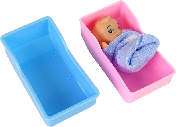 Set obsahuje dieťa, dve vaničky a lekárske stanovište, ktoré umožňuje hranie rolí nápaditého zdravotníckeho prostredia.
