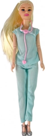 Elegantný lekársky outfit a dlhé, blond vlasy dávajú bábike autentický vzhľad, ktorý deti nadchne.