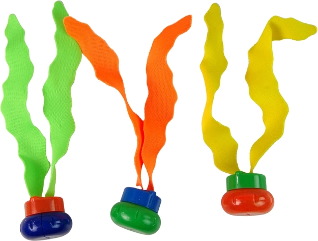 Tri farebné „kvety“ s textilnými vláknami klesajú na dno a jemne sa vlnia. Deti ich ľahko zaregistrujú a s chuťou ich vylovia – skvelé na zlepšenie kontroly dychu, orientácie a istoty pod vodou.