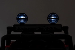 Interiér ponúka prehľadný volant, palubnú dosku s tlačidlami pre hudbu a funkcie, bezpečnostné prvky a pohodlné sedenie. Autíčko je ideálne na jazdu na záhrade, chodníku aj v ľahšom teréne a podporuje kreatívnu hru aj rozvoj motoriky.