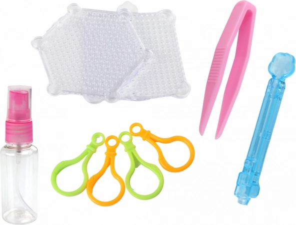 Kreatívna sada vodných korálikov pre deti obsahuje 8 žiarivých farieb, dve podložky (štvorec a šesťuholník), rozprašovač na vodu, pinzetu, aplikátor a závesné krúžky na tvorbu originálnych ozdôb. Skvelá zábava na rozvoj jemnej motoriky, fantázie a trpezlivosti. Certifikácia CE a norma EN71, vhodné pre deti od 5 rokov.