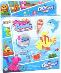 Tvorte rybky, kraby či delfíny z farebných korálikov, ktoré sa po postriekaní vodou spoja. Skvelá aktivita na rozvoj fantázie a šikovnosti.
