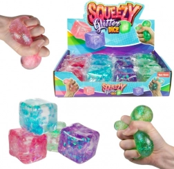 Antistresová stláčacia trblietavá kocka 6 × 6 cm