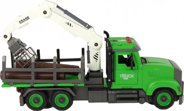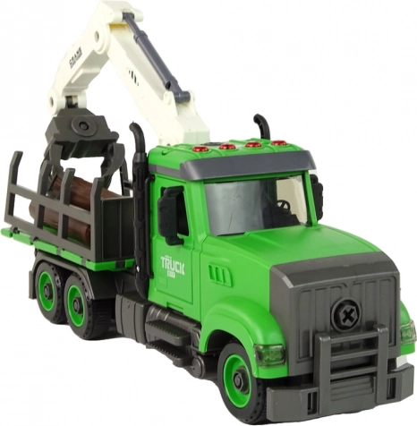 V balení nájdete aj skrutkovač s 2 bitmi na skrutkovanie a rozoberanie vozidla – deti si precvičia zručnosť a technické myslenie. Odolný plast zaručuje dlhú životnosť. Rozmery vozidla: 35 × 22 × 9,5 cm, dĺžka polienka: 13 cm. Hračka má certifikáciu CE a zodpovedá norme EN71, vhodná pre deti od 3 rokov.