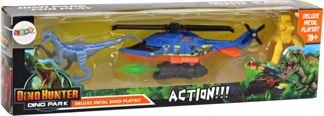Modrý Dino Park set spája vzrušenie z lietania a tajomný svet dinosaurov. Helikoptéra s funkčným uchopovačom umožňuje deťom zachytiť dinosaura priamo zo zeme, čo dáva hre spád a dynamiku. Ideálne pre malých prieskumníkov, ktorí milujú akčné scenáre a otvorené hranie.