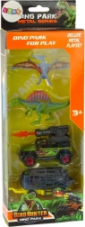 Figúrky vynikajú výrazným farebným prevedením a realistickými tvarmi – pteranodon s rozprestretými krídlami a dravý spinosaurus so zariadeniami na chrbte. Auto s pohyblivým projektilom podporí akčné príbehy, zatiaľ čo príves s otváracími dvierkami umožní jednoduché nakladanie a vykladanie.