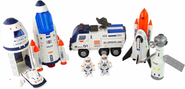 Ústredným prvkom sady je veľká vesmírna raketa v modrobielej farbe. Má precízne spracované detaily, vrátane raketových motorov, prístupových dverí a okien kabíny. Na vrchole rakety je pomocou konektorov pripojená kozmická loď. Kozmická loď je tiež modrobiela a má otváraciu kabínu pre kozmonautov.