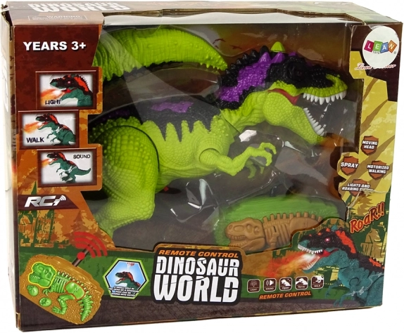 Dinosaurus na diaľkové ovládanie v zelenej farbe je dynamický dinosaurus, ktorý funguje na 3 batérie AA 1,5 V (nie sú súčasťou balenia, vkladajú sa do chvosta), vďaka čomu sa správa realisticky. Vydáva červené svetlo a charakteristické dinosauří zvuky, takže pôsobí hrozivo.
