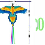 Užite si vietor s veľkým farebným drakom v tvare papagája. Vďaka rozmerom 250 × 140 cm, ľahkému a odolnému materiálu a jednoduchému ovládaniu je ideálny na rodinnú zábavu na čerstvom vzduchu. Súčasťou je zelený navijak/rukoväť s dlhou šnúrkou pre stabilný let, precízne ovládanie a pútavú podívanú.