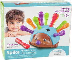 Táto interaktívna skladacia hra s ježkom je ideálna na prvé učenie hrou. Deti vkladajú 12 plastových ostňov do okrúhlych otvorov na chrbte ježka a pritom sa učia čísla 1–12, spoznávajú farby a rozvíjajú koordináciu ruka–oko aj sústredenie. Vďaka kompaktným rozmerom sa ježko dobre drží a manipulácia s ostňami je pohodlná.