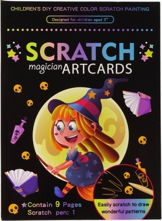 Objavte kreatívnu zábavu so sadou stieracích omaľovaniek pre deti s motívmi čarodejníc. Stačí zoškrabať čiernu vrstvu dreveným stylusom a odhaliť farebné ilustrácie. Ideálne na rozvoj fantázie a jemnej motoriky, praktické rozmery pre detské ruky a bezpečné prevedenie s certifikáciou CE.