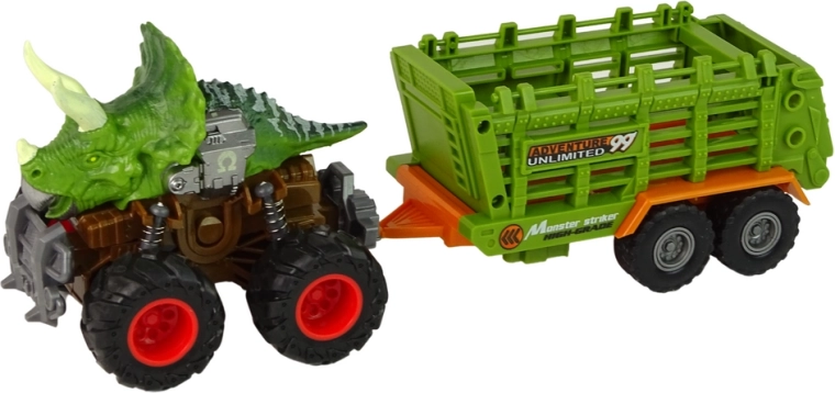 Jedným z mimoriadnych prvkov tohto vozidla je jeho trecí pohon. Stačí vozidlo natiahnuť späť a pustiť, aby vyrazilo dopredu. Zelený príves môže prepravovať štyroch rôznych dinosaurov, každý jedinečný svojim druhom, tvarom a farbami, čo umožňuje deťom vytvárať rôzne herné scenáre.