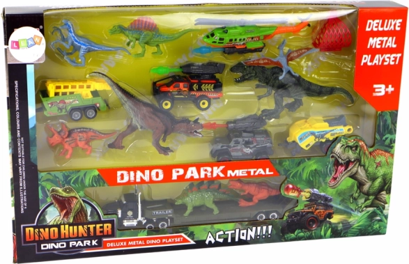 Veľká dinosauří súprava s vrtuľníkom a vozidlami prenesie deti do fascinujúceho sveta objavov a dobrodružstiev. Obsahuje tri vozidlá s prívesmi umožňujúcimi prepravu dinosaurov, z ktorých dva majú otáčacie vystreľovače pridávajúce akčný prvok. Vďaka detailnému spracovaniu tieto hračky robia hru ešte zaujímavejšou.