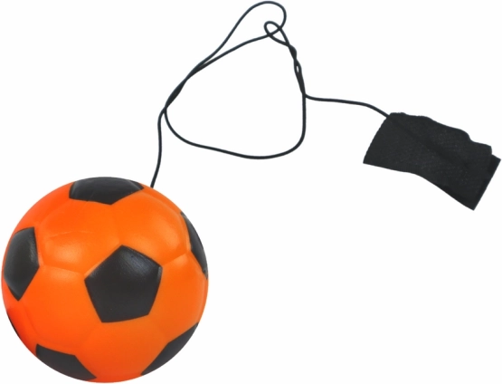 Zábavná futbalová loptička na gumičke s jo-jo efektom a pásikom na suchý zips (priemer 6 cm) z odolného polyuretánu na hranie vonku aj doma; skvelá pre deti od 3 rokov.