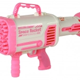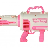Pištoľ na bubliny v bielej a ružovej farbe má pútavý dizajn. Je navrhnutá tak, aby pripomínala skutočnú pušku, no namiesto strieľania projektilov vytvára krásne mydlové bubliny.