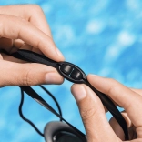 Mäkké silikónové lícnice bezpečne priliehajú k tvári a bránia prenikaniu vody. Nastaviteľný silikónový remienok s rýchlou reguláciou a pohodlný nosný mostík umožnia presné a stabilné usadenie počas každého záberu.