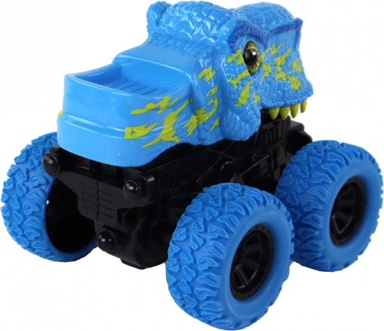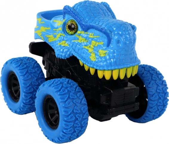 Modrá karoséria s dinosaurom vedie deti do sveta praveku a podporuje ich predstavivosť.