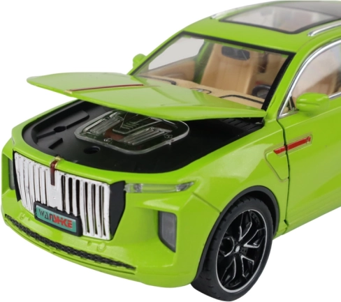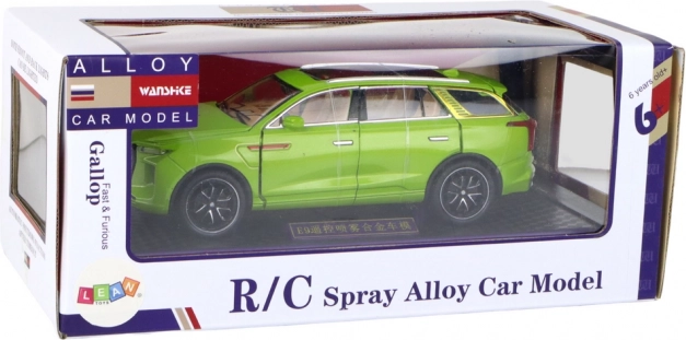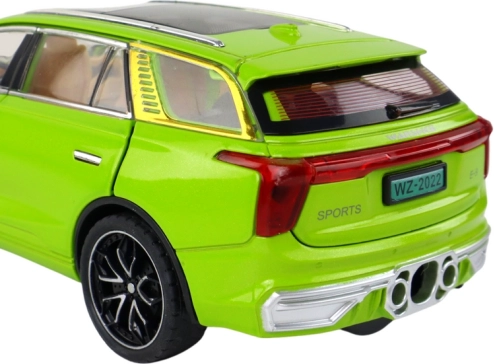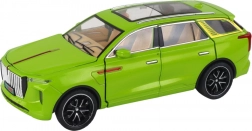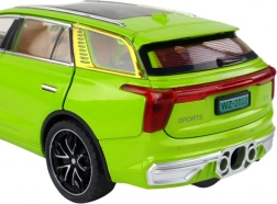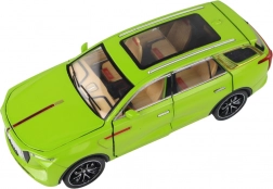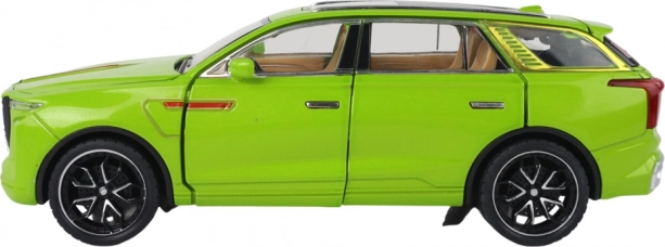 Model SUV hračka vyniká realistickými detailmi, ako sú čierne kolesá, strieborné prvky a viditeľný interiér. Vyrobené z plastu, tento model je vernou kópiou skutočného SUV.